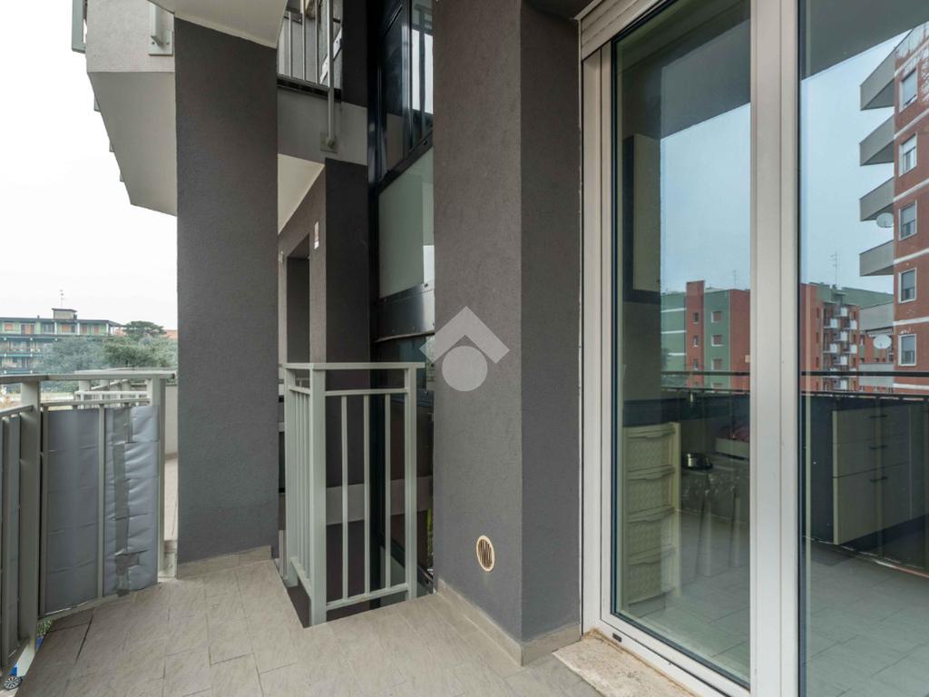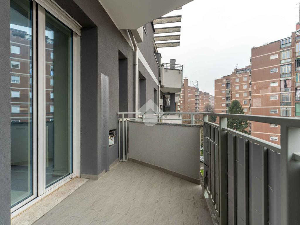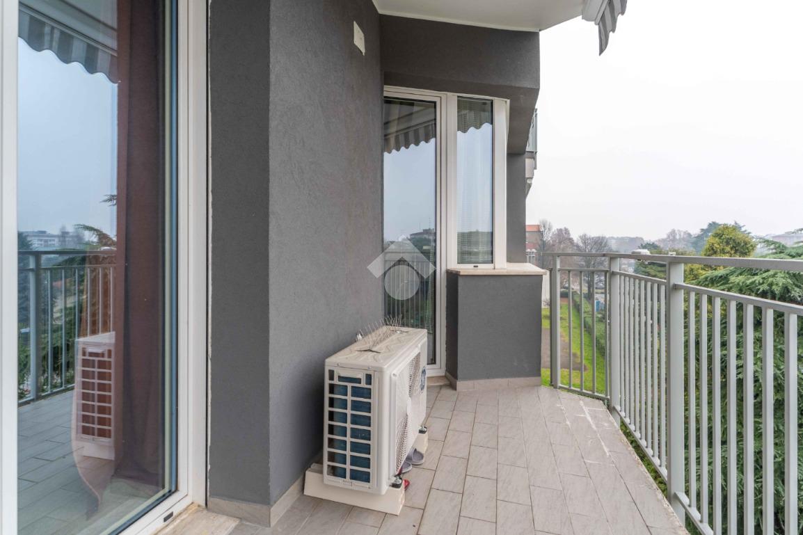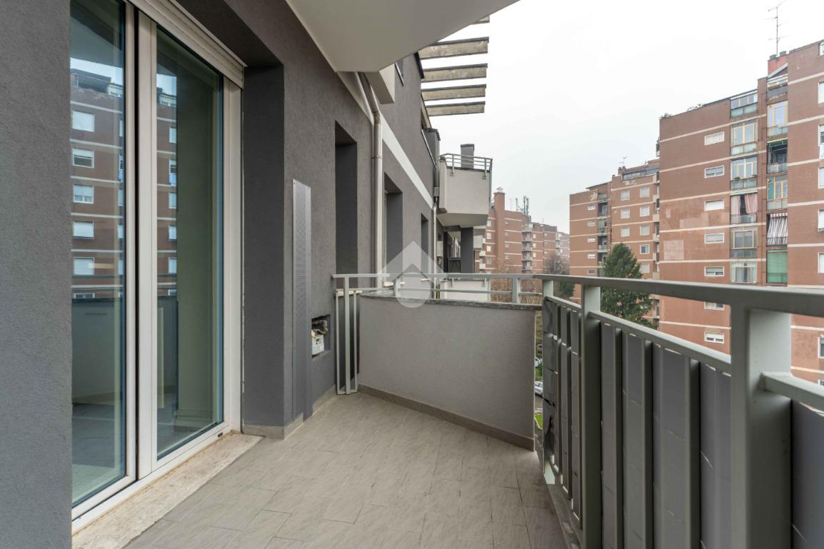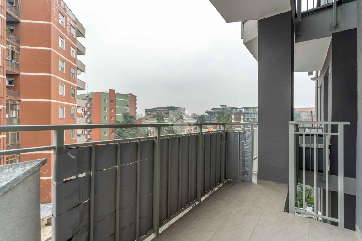 La soluzione è composta da grande soggiorno con terrazzino, cucina abitabile con balcone, due camere di generose dimensioni, bagno finestrato con doccia e pratico ripostiglio.